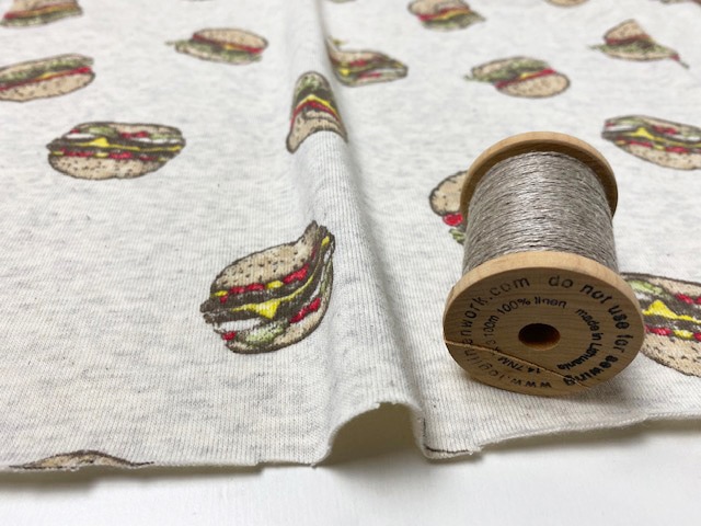 【お試し】30/-オーガニック天竺ハンバーガー柄×ベンクールSET