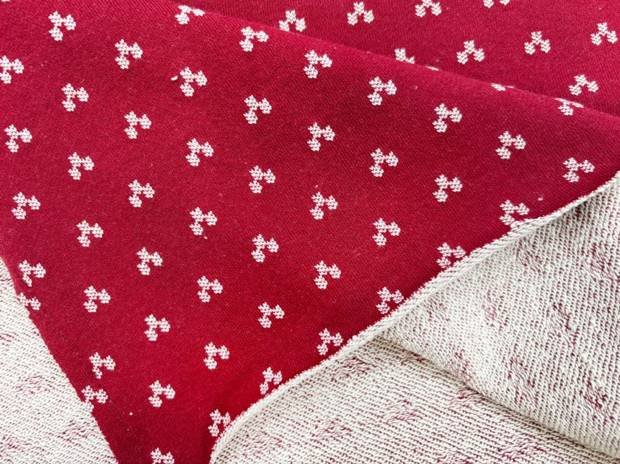 30/-TOP杢ネップ裏毛ニットキノコ柄 グレー杢×ストロベリーレッド
