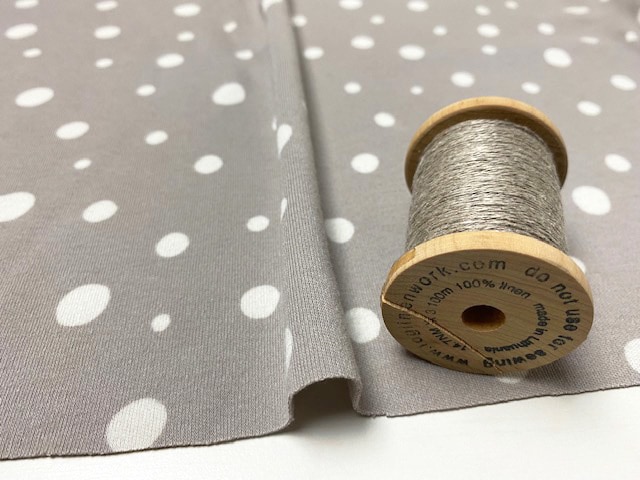 40/コーマスムースニット ラフドット柄抜染プリント トープグレー
