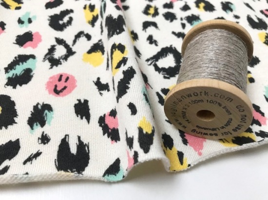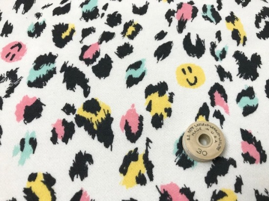40/20ミニ裏毛ニット スマイリーレオパード柄キャンディポップ