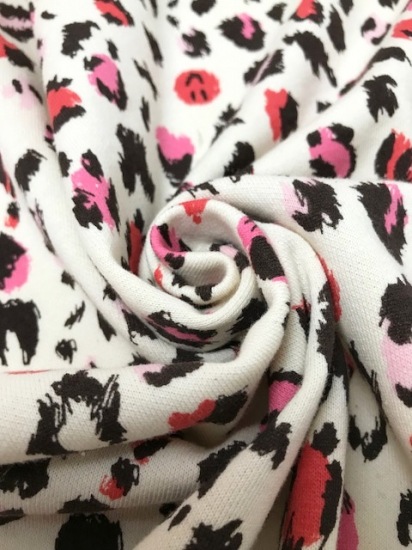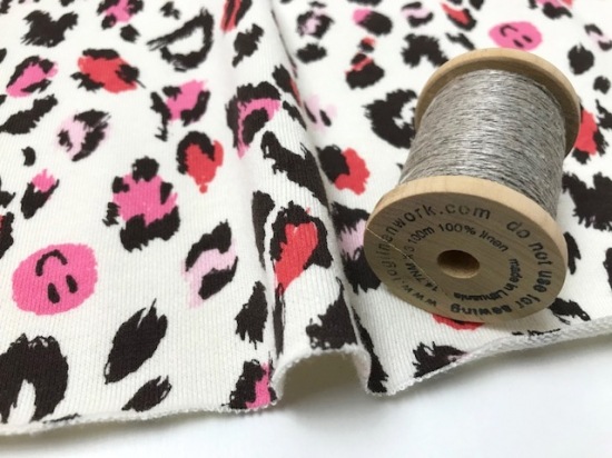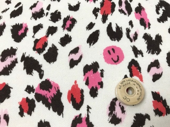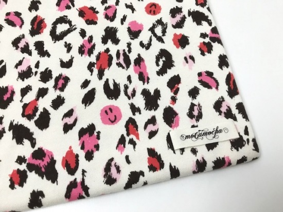 40/20ミニ裏毛ニット スマイリーレオパード柄ラブピンク