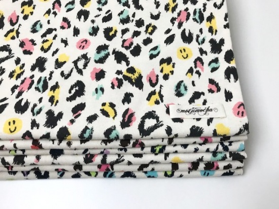 「40/20ミニ裏毛ニット スマイリーレオパード柄キャンディポップ