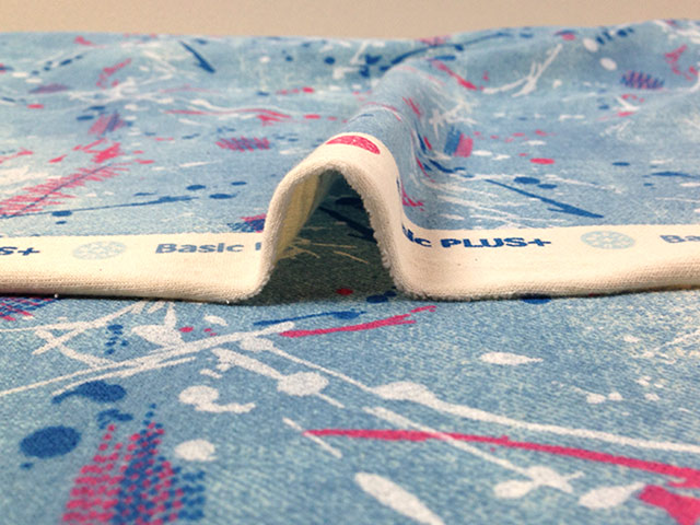 40/20ミニ裏毛ニット デニムスプラッシュ柄 サックス
