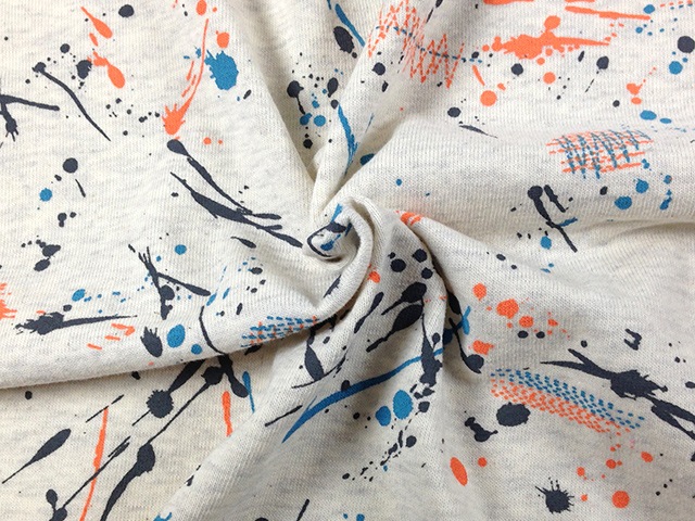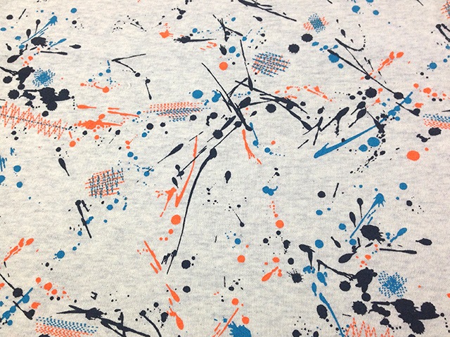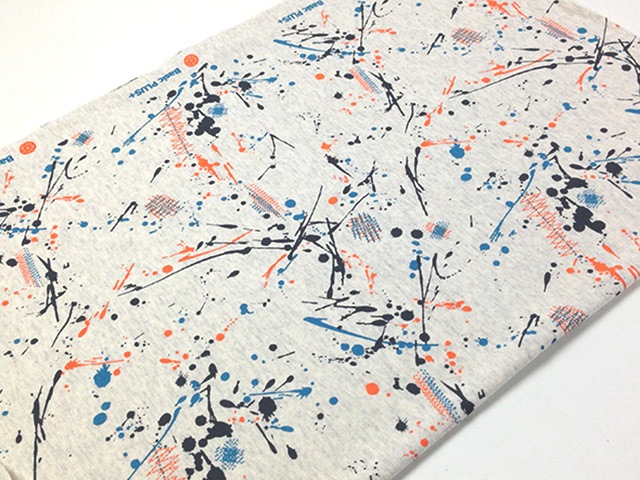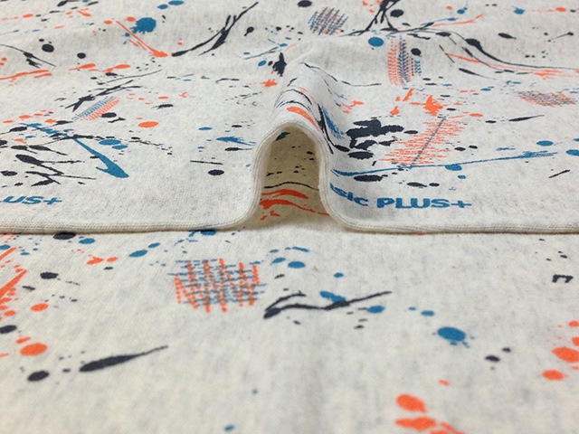 オリジナル30/-TOP杢リバー天竺ニット オートミール杢 スプラッシュステッチ柄 オレンジターコイズ
