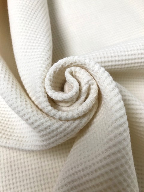 40/糸を使用した、コットン100%の伸びの良いワッフル生地を編みました。