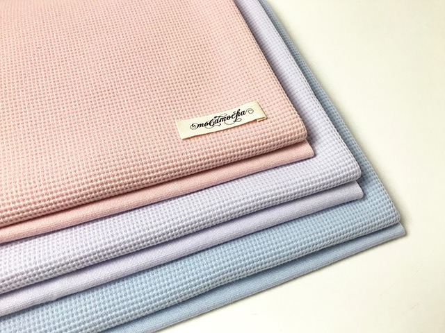 40/糸を使用した、コットン100%の伸びの良いワッフル生地を編みました。