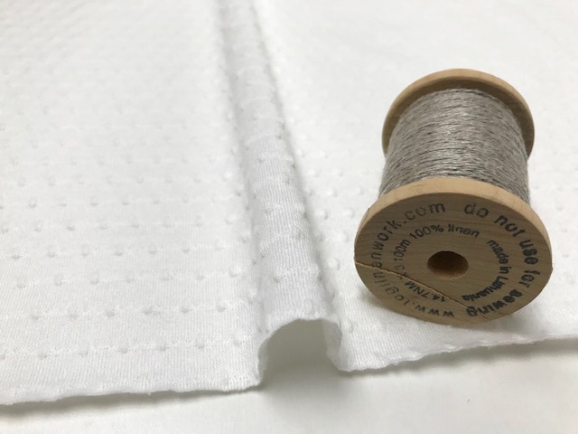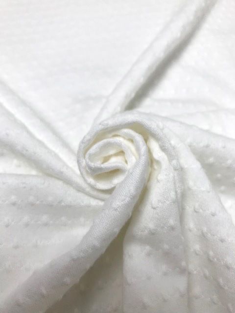 ドット部分は凹凸状で60/2糸を使用したシングルジャガード編みの生地です。