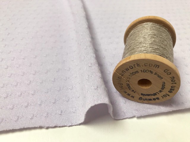 ドット部分は凹凸状で60/2糸を使用したシングルジャガード編みの生地です。