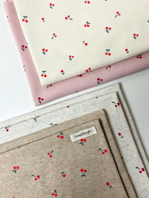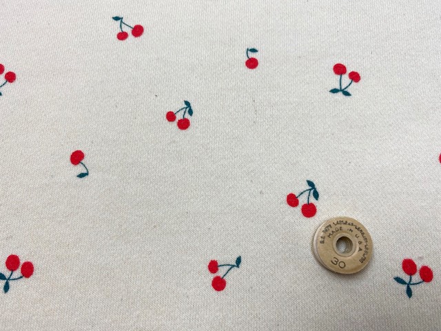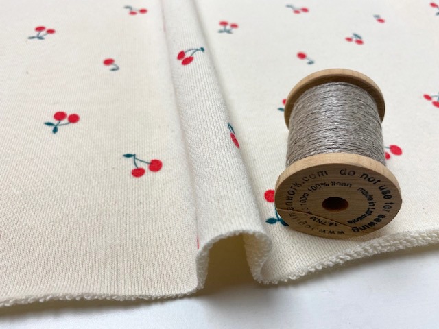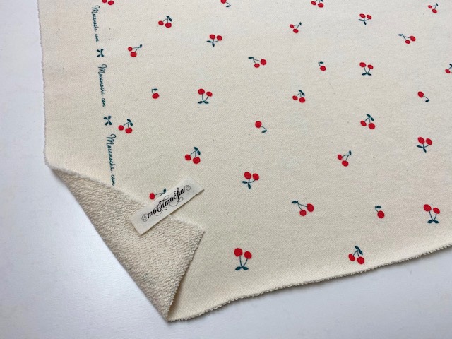 さんに、「40/10裏毛ニット さくらんぼ柄エクリュ×オレンジレッド」でサンプルを
