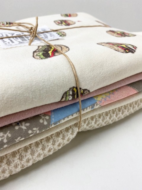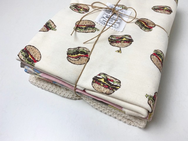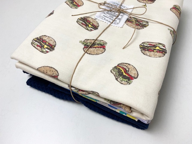 【40/スムース ハンバーガー柄×ハニカムジャガードニット 女の子向けSET】 40/スムースニットにプリントした、人気の新柄「ハンバーガー柄」と、 可愛らしい「40/-CMプレーティング天竺ニット カントリーパッチ柄」、 ざっくりとした風合いと編み目が特徴的な「ハニカムジャガードニット」を 組み合わせたカットセットを作成しました☆ リブに使用する「30/スパンフライス」と「40/スパンフライス」も 一緒にセットされたとても使いやすい商品内容です! セットアップや、姉妹お揃いのお洋服づくりにもおススメのお得なカットセットです☆ とってもお買い得♪ 定価 6360円~6708円 相当→ 20~24%OFF 5080円(税抜) 入っている生地 計 3.6m 〇エクリュセット ・40/コーマスムースニット ハンバーガー柄 エクリュ×オリジナル 1m ・40/スパンフライス スモーキーピンク 0.3m ・40/-CMプレーティング天竺ニット カントリーパッチ柄ベイビー 1m ・30/スパンフライス エクリュ 0.3m ・ハニカムジャガードニット エクリュ 1m 〇インディゴセット ・40/コーマスムースニット ハンバーガー柄 エクリュ×オリジナル 1m ・40/スパンフライス アイスラベンダー 0.3m ・40/-CMプレーティング天竺ニット カントリーパッチ柄スカイ 1m ・30/スパンフライス インディゴ 0.3m ・ハニカムジャガードニット インディゴ 1m ●お得なセットになります。 ●全て生地幅は巾なりでございます。 ●数量限定となります。 〇エクリュセット 〇インディゴセット 〇サンプル紹介 「40/コーマスムースニット ハンバーガー柄 エクリュ×オリジナル」を使用して、 パターンショップ Snuggle*パターンさんの『ビコロールT』のバルーン袖ver. で 140サイズのサンプルを作成しました♪ 上:首リブ「40/スパンフライス レモン」、袖リブ「スモーキーピンク」と「スノーブルー」 下:首リブ「40/スパンフライス アイスラベンダー」、袖リブ「ミント」と「グレージュ」 リブを色々なカラーで合わせてみましたので、リブの色選びの参考にしてみて下さいね。 サンプルのように色々な色合わせて合わせていただくのも可愛いです(^^) 袖口がふんわりしたシルエットのパフ袖ですので女の子向けの可愛いデザインで、 サイドにスリット入りの仕様です☆ ○サンプル紹介 パターンショップの Mahoe Anela さんに「ハニカムジャガードニット スノーブルー」で 『 かんたんプル 』半袖ver. 130サイズをお作り頂きました! 「 デザイン選べるサロペット 」のインナーとして着て頂いています。 ハニカムジャガードニットの表情ある生地感出た、とっても可愛い置き画です♪ 首回りのリブは「40/スパンフライス スノーブルー」を使用しています。 こちらはリブと前立ても「ハニカムジャガードニット レモン」の共布でお作り頂いた、 『 ソリードガーデ 』です。 前立ての”ダイヤカットボタン”が 更に 可愛らしさを引き立ててくれます♪ 「ハニカムジャガードニット」は 厚みもあり少し透け感もあるので、 ざっくりとした生地感で着ていただけると思います。サンプルを参考にしてみてくださいね(^^) ◯サンプル紹介 「ハニカムジャガードニット エクリュ」を使用した バックリボン付きのプルオーバーカットソーを作成しました♪ パターンは toco.pattern.shop さんの「pullover」130サイズです。 袖口は元のパターンから 2倍の長さに変更してギャザー寄せ処理をしています♪ リブに 40ツイストストライプ エクリュ、リボンは「ドットチュール エクリュ」を使用。 ドットチュールは切りっぱなしOKで、軽くてボリュームのあるリボンが作れます♪