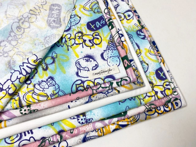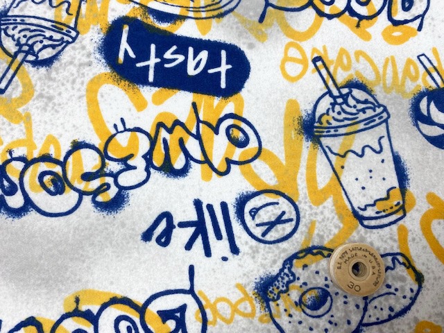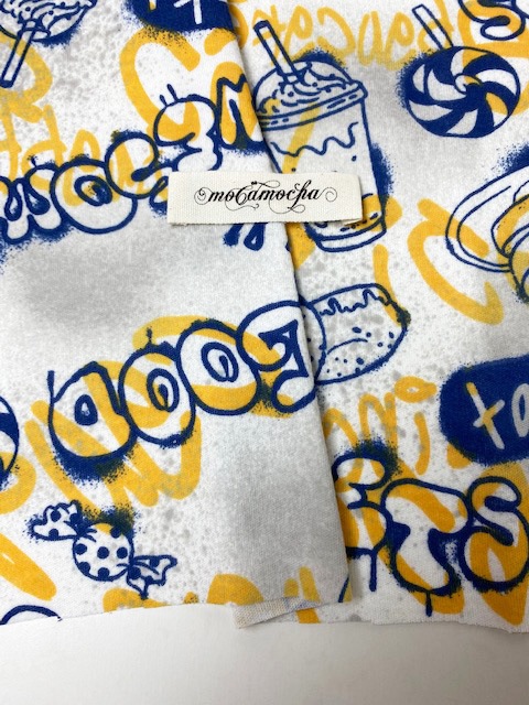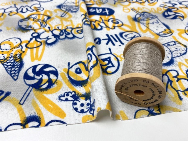 30/-オーガニック天竺ニット スイーツグラフィティ柄オフ×ブルーハワイ