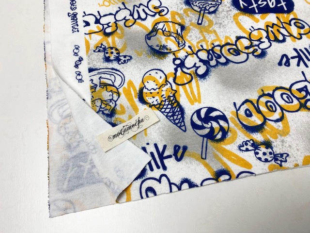 【カット済】30/-オーガニック天竺ニット スイーツグラフィティ柄オフ×マンゴー