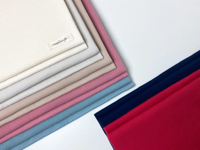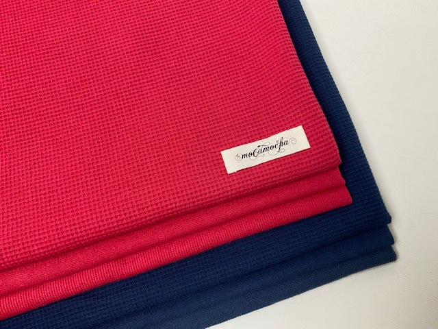 40/糸を使用した、コットン100%の伸びの良いワッフル生地を編みました。