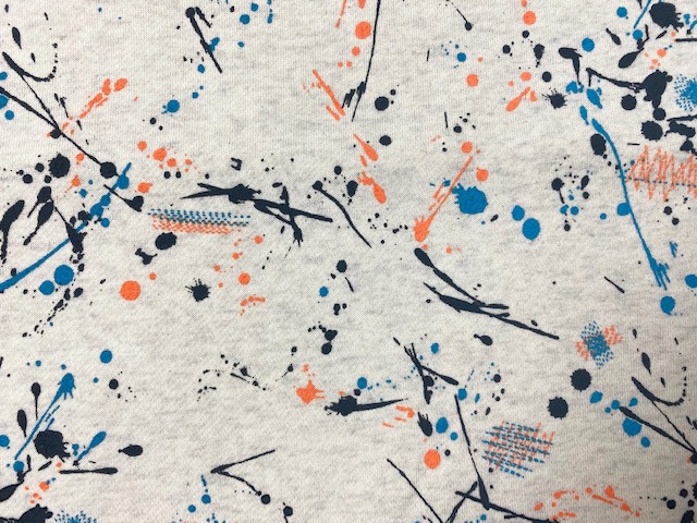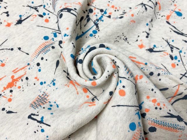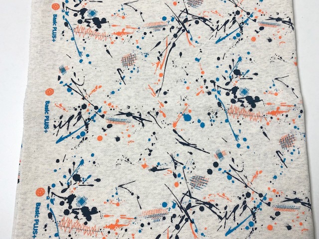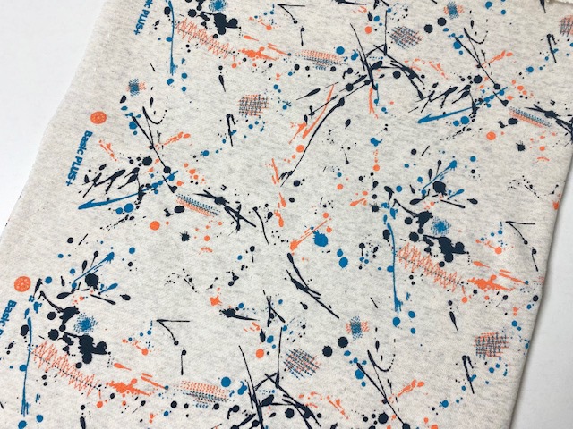 40/10TOP杢裏毛ニット オートミール杢 スプラッシュステッチ柄 オレンジターコイズ