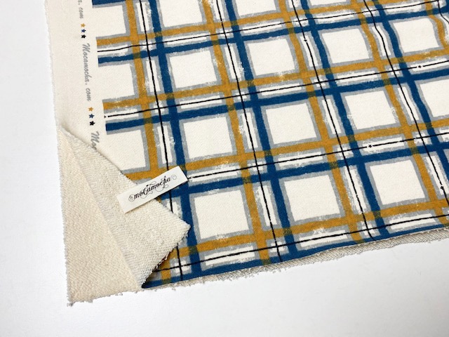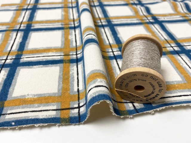 40/10裏毛ニットフェイデッドチェック柄ブルーマスタード