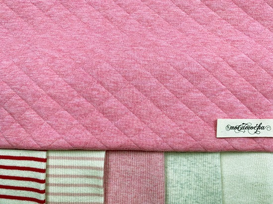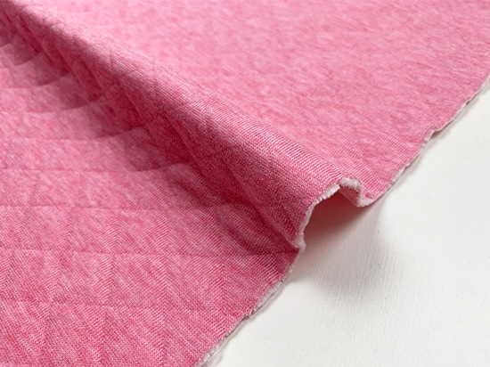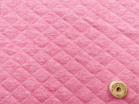 ニットのキルトは編みながらキルティングしているので、布帛のキルティングと異なり縦横に伸縮性があります。