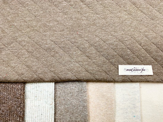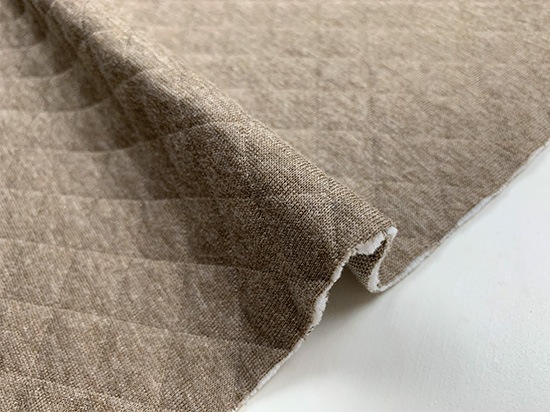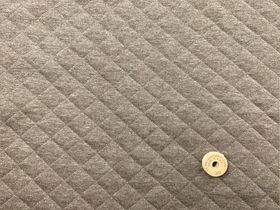 ニットのキルトは編みながらキルティングしているので、布帛のキルティングと異なり縦横に伸縮性があります。