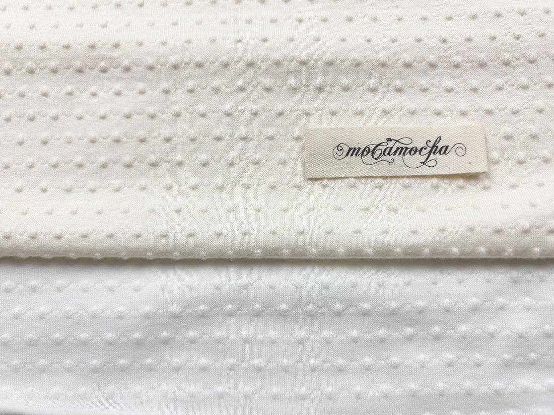 ドット部分は凹凸状で60/2糸を使用したシングルジャガード編みの生地です。
