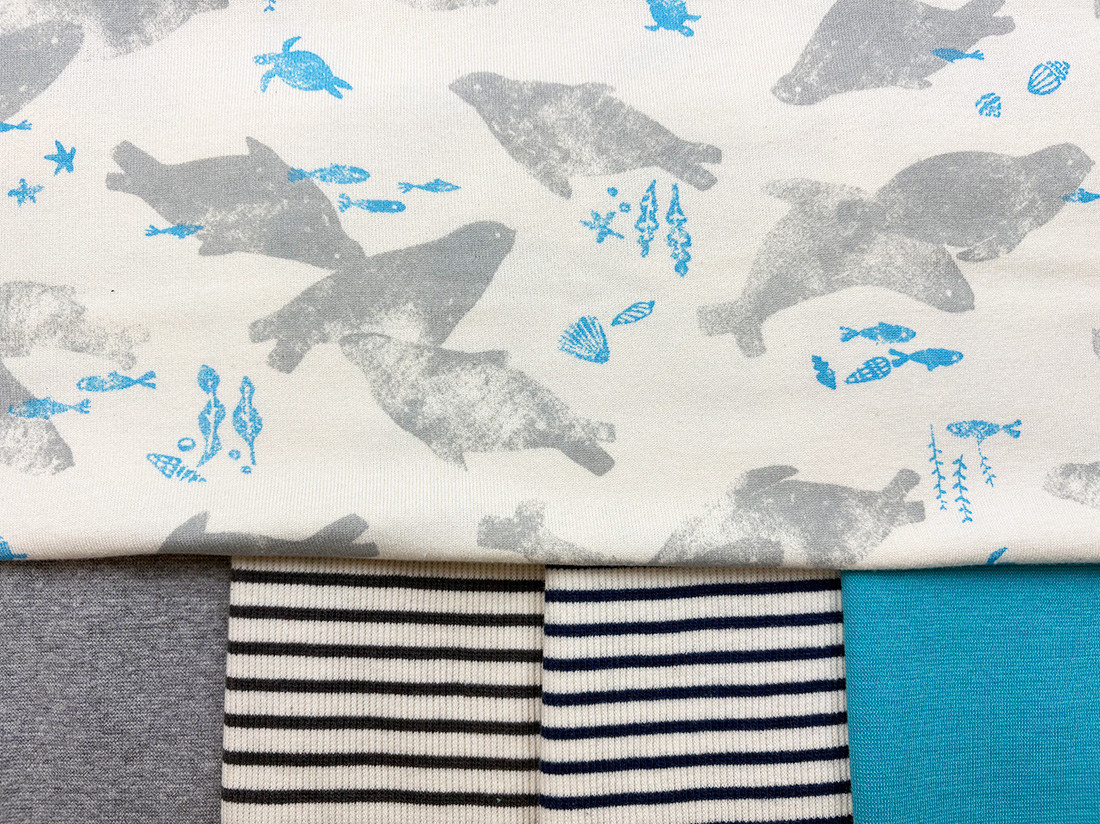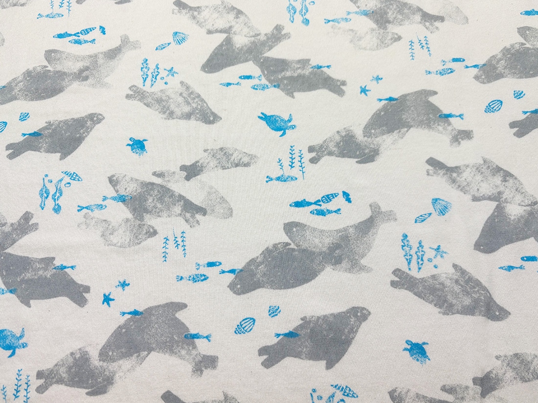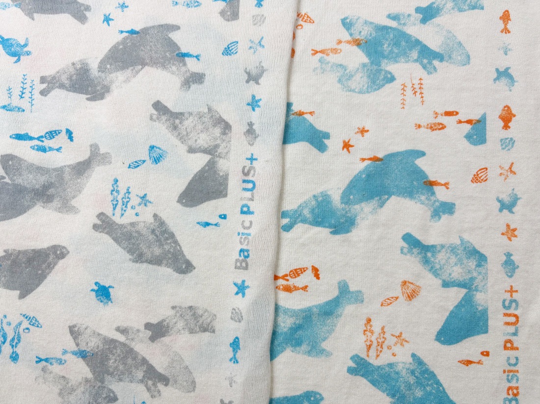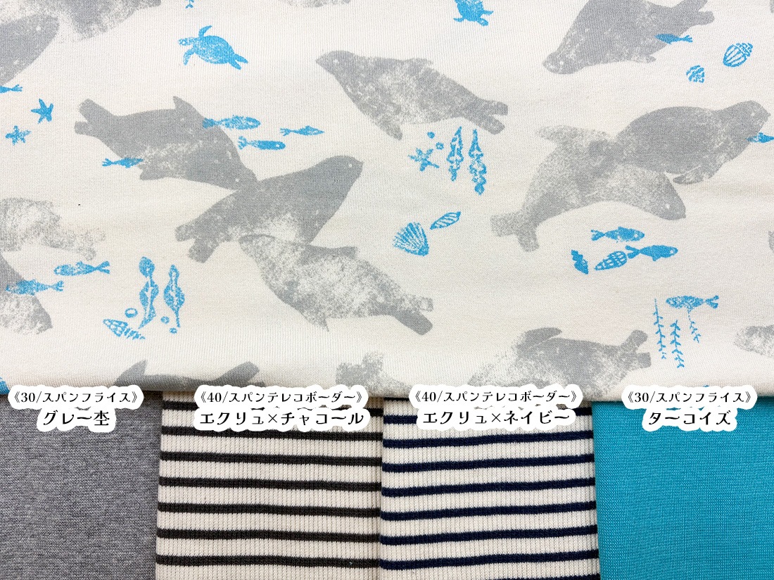 エトワールパレット様に「40/2-CM天竺ニット すいすいマリン柄 アッシュグレー×ブルー」でサンプルをお作り頂きました♪