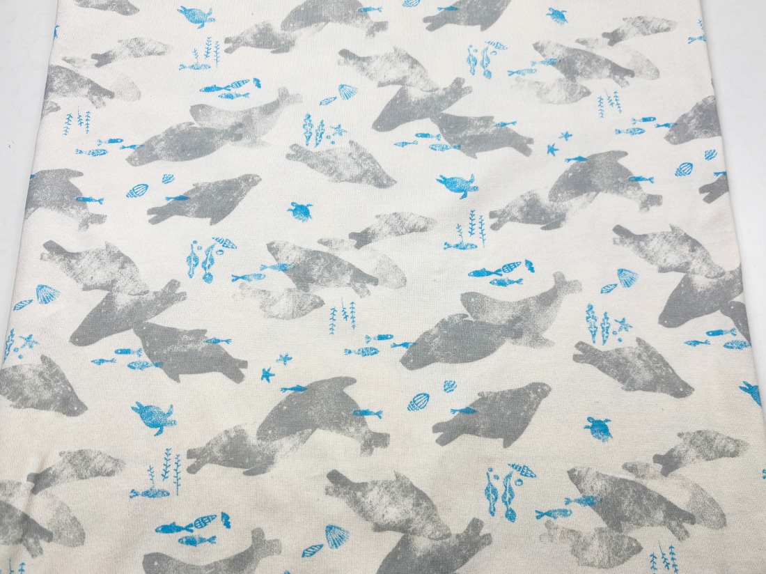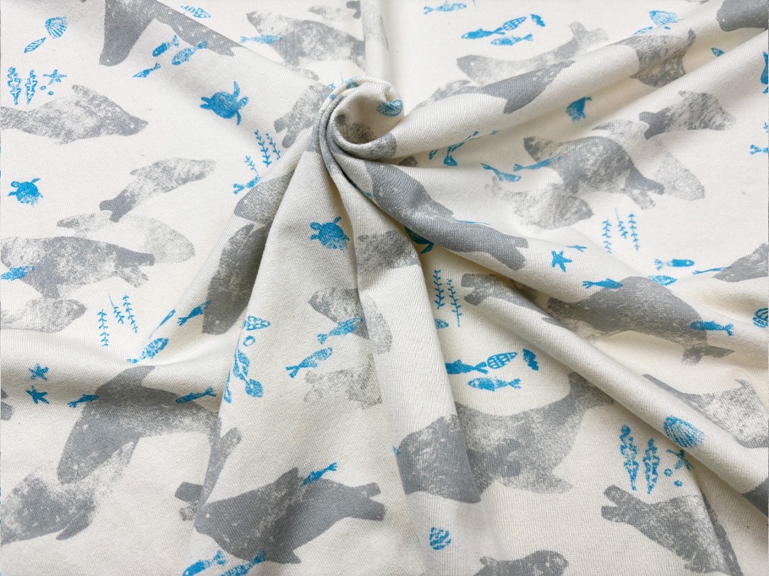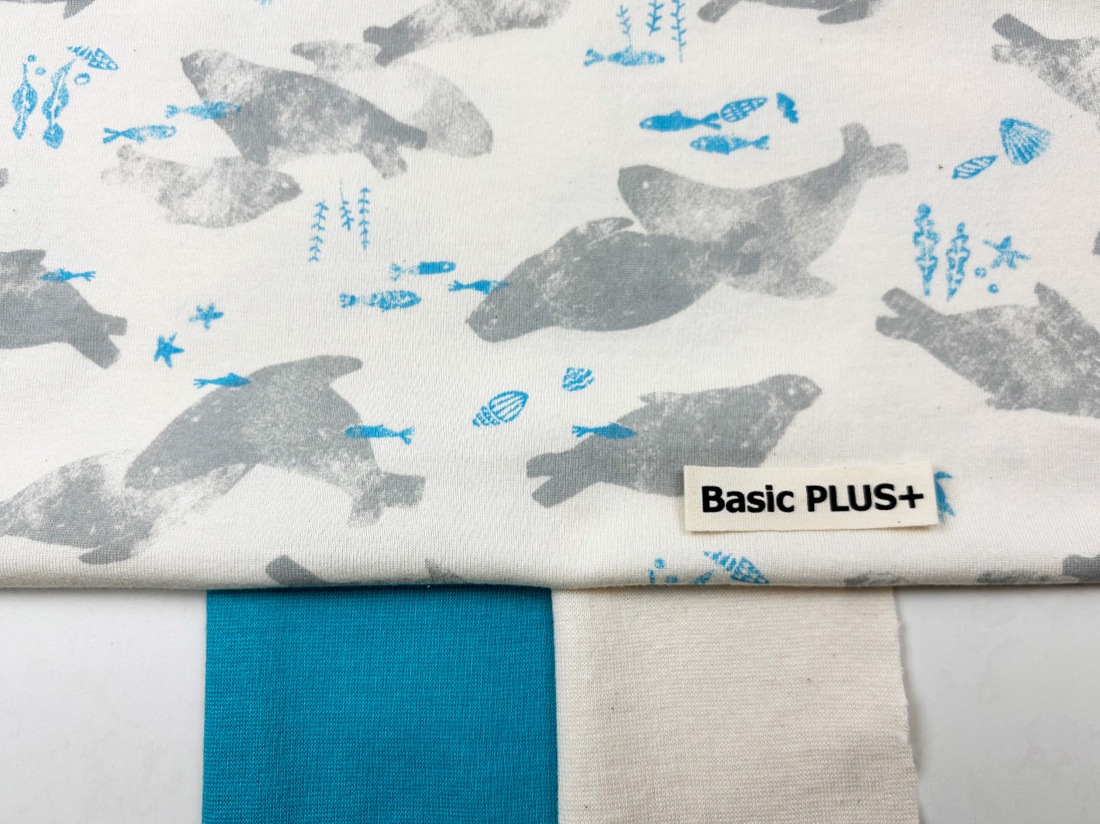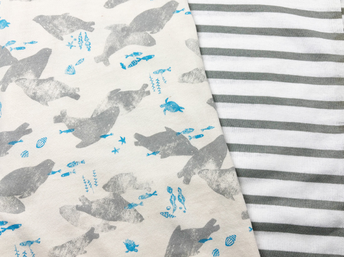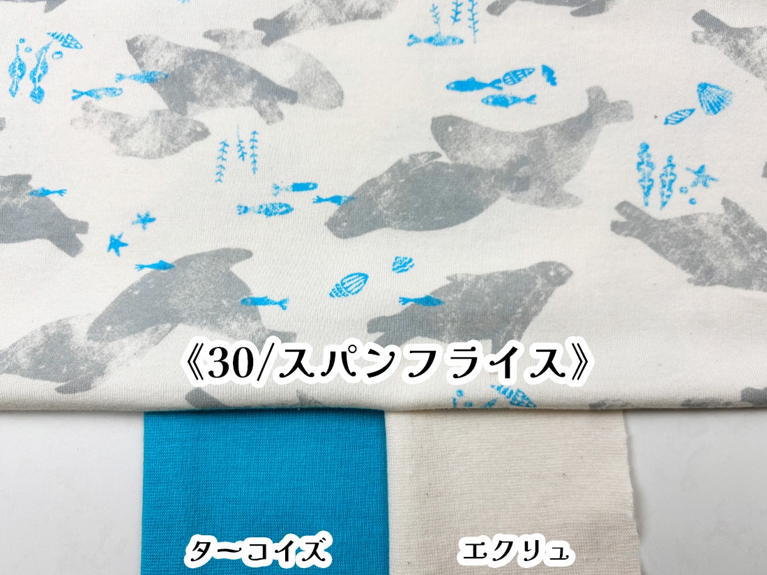エトワールパレット様に「40/2-CM天竺ニット すいすいマリン柄 アッシュグレー×ブルー」でサンプルをお作り頂きました♪