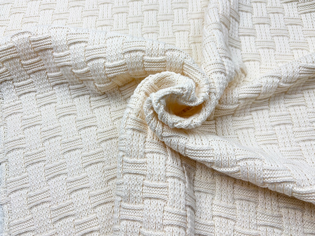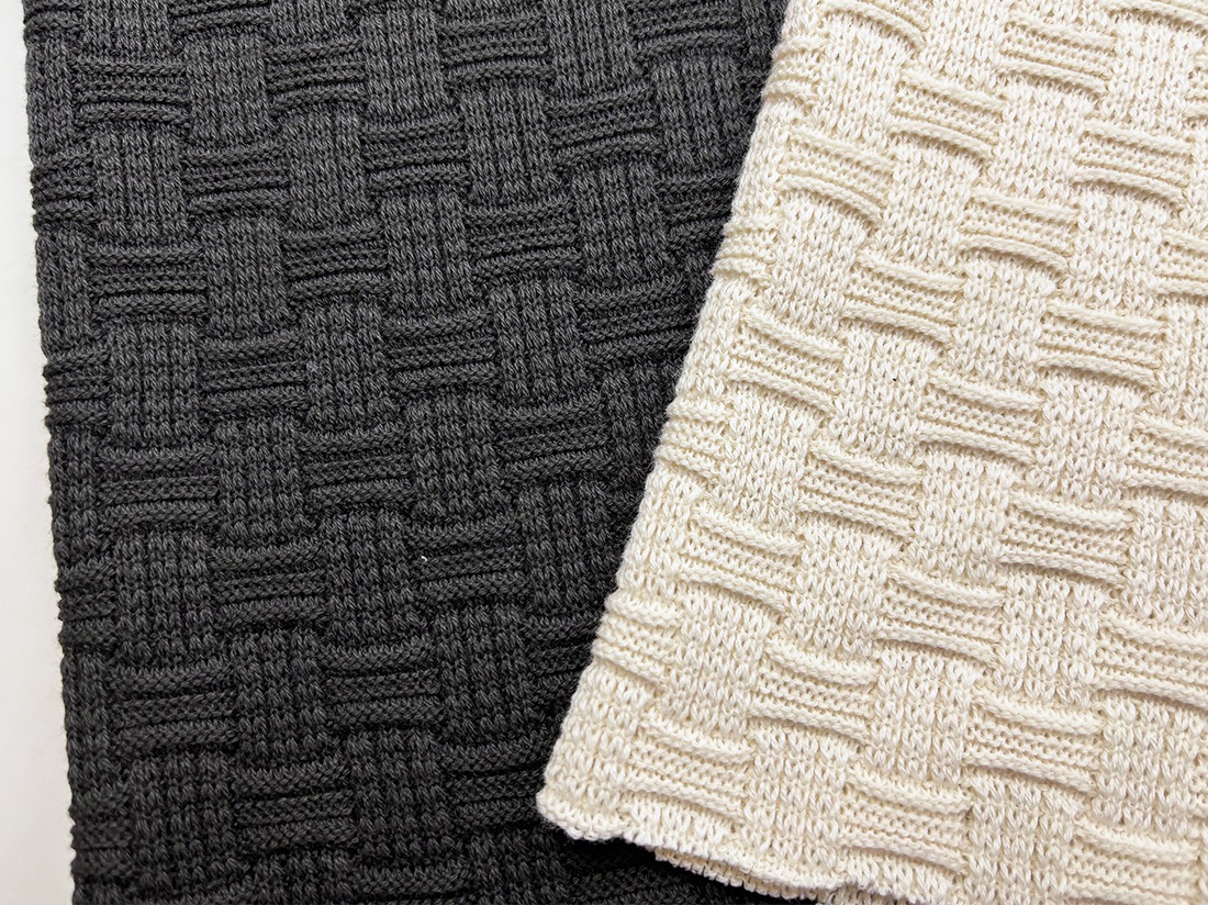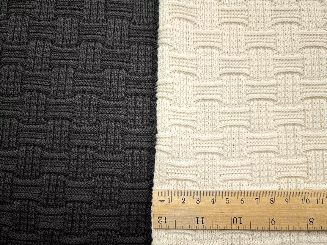 まるでバスケットを編んだような立体的な編み柄が魅力のリンクス生地です。