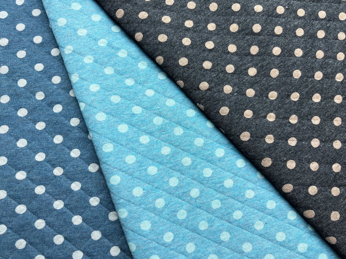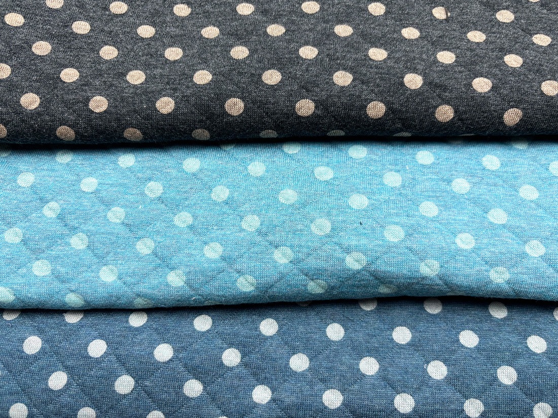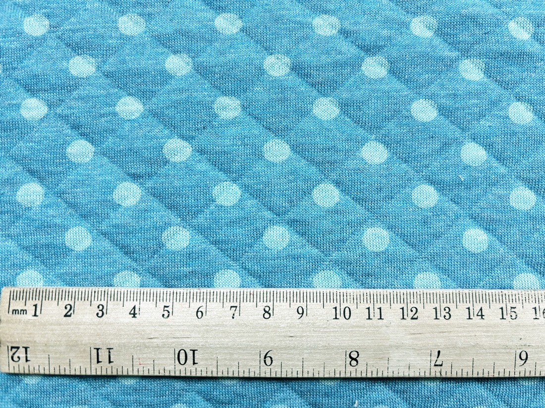 ニットのキルトは編みながらキルティングしているので、布帛のキルティングと異なり縦横に伸縮性があります。