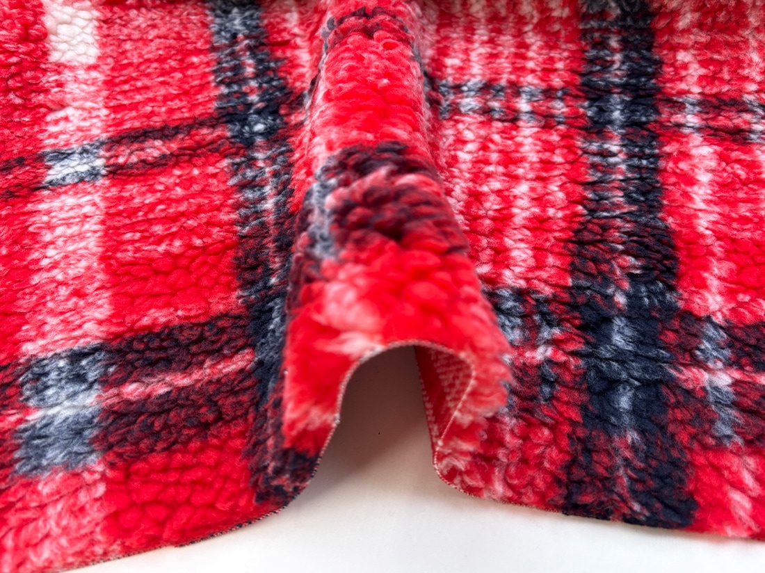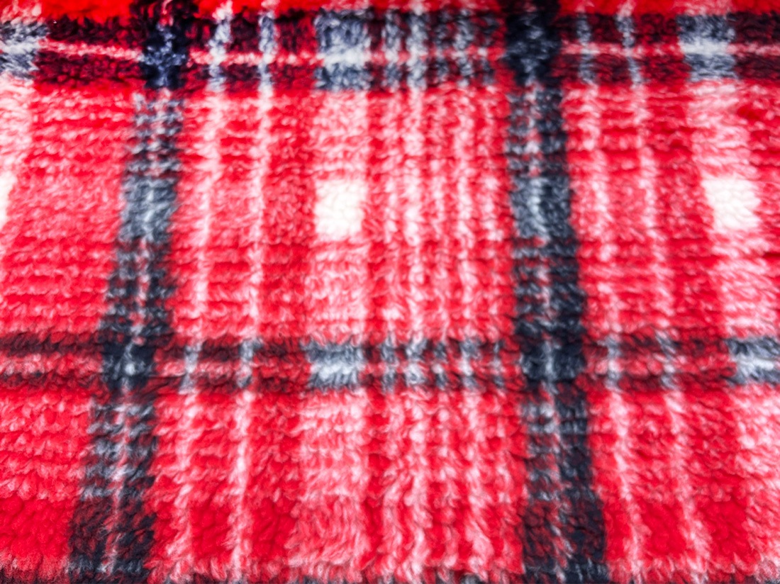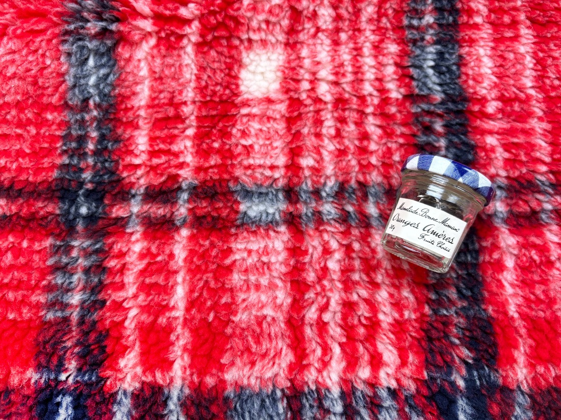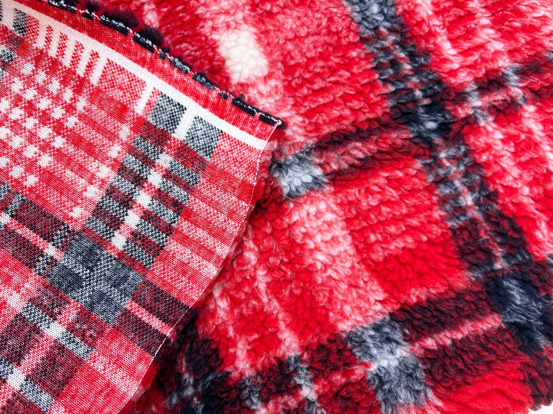 クラシカルなチェック柄をふんわりとしたシープボアで表現し、見た目にもあたたかく上品な印象。