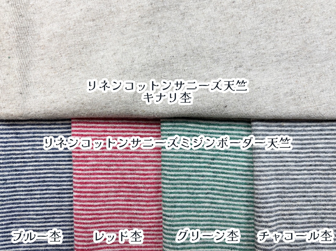 《リネンコットンサニーズミジンボーダー天竺》と同色展開なので、無地×ボーダーの切り替えや部分使いにもおすすめ◎
