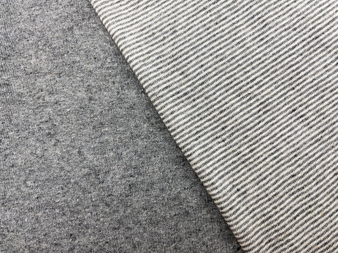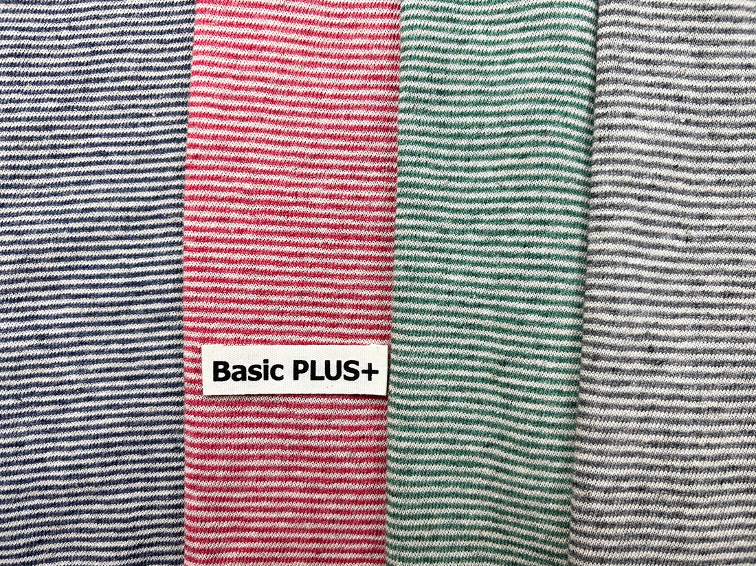 リネンとコットン、それぞれの良さを活かして仕上げた細かなミジンボーダーの天竺ニットです。