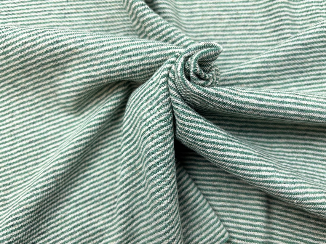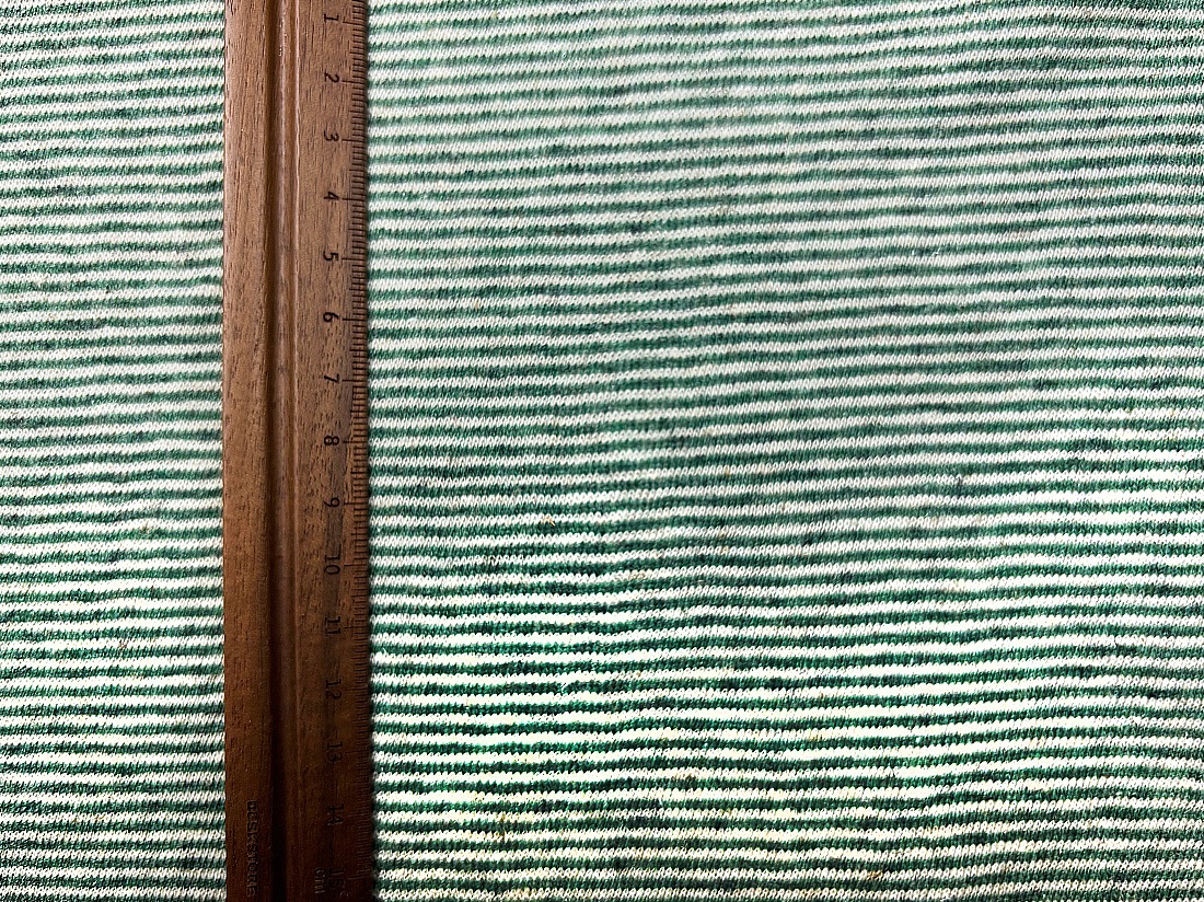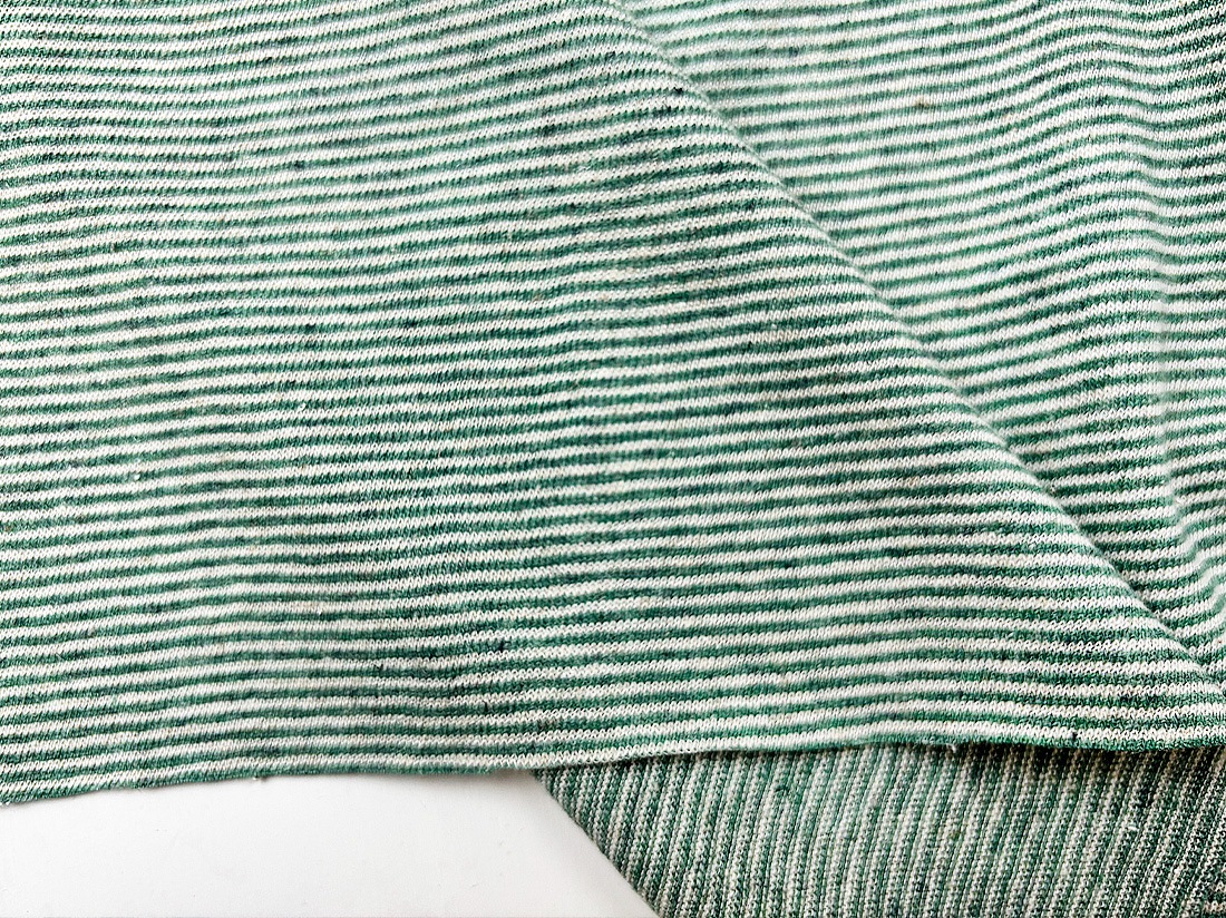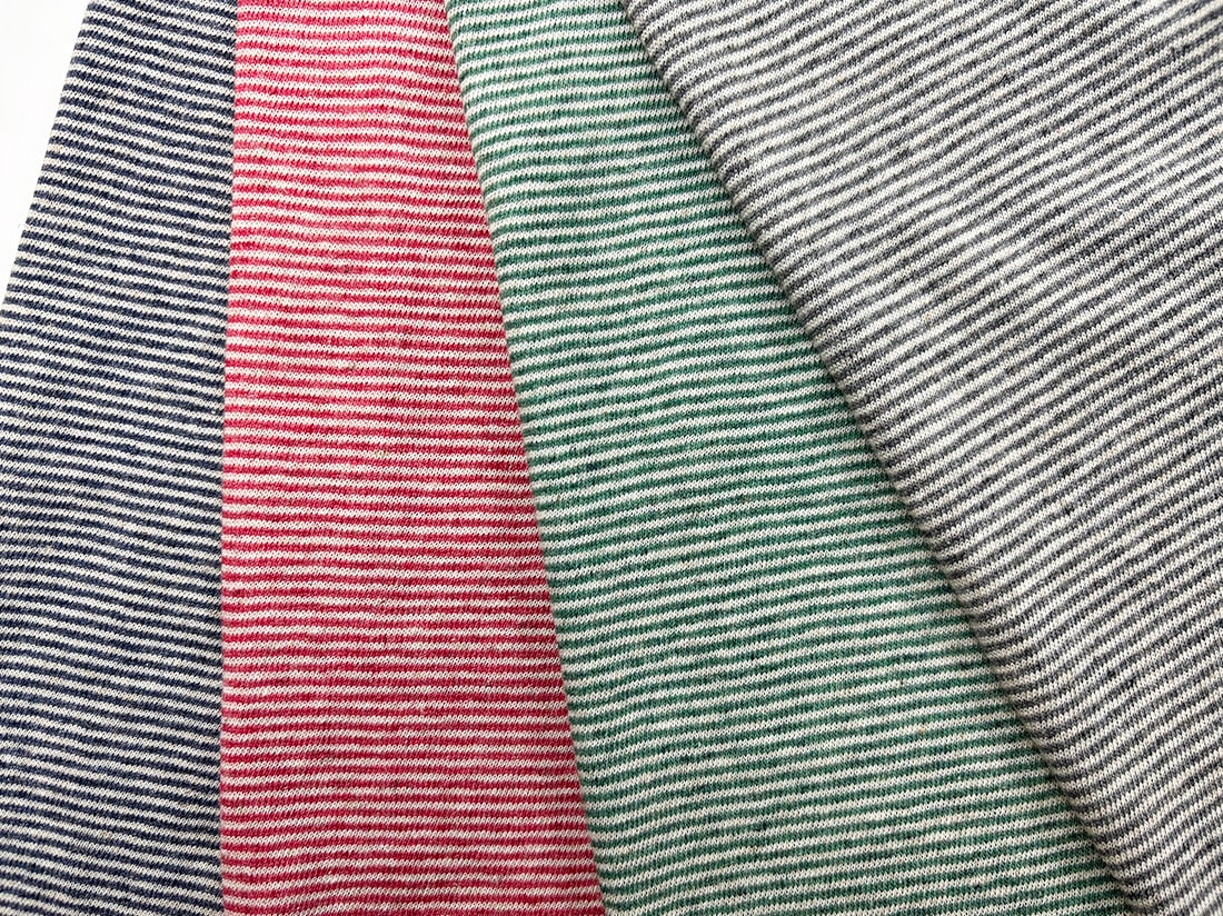 リネンとコットン、それぞれの良さを活かして仕上げた細かなミジンボーダーの天竺ニットです。