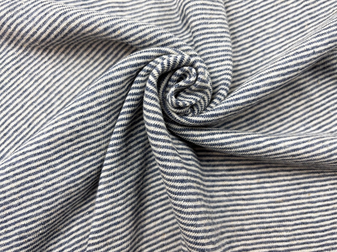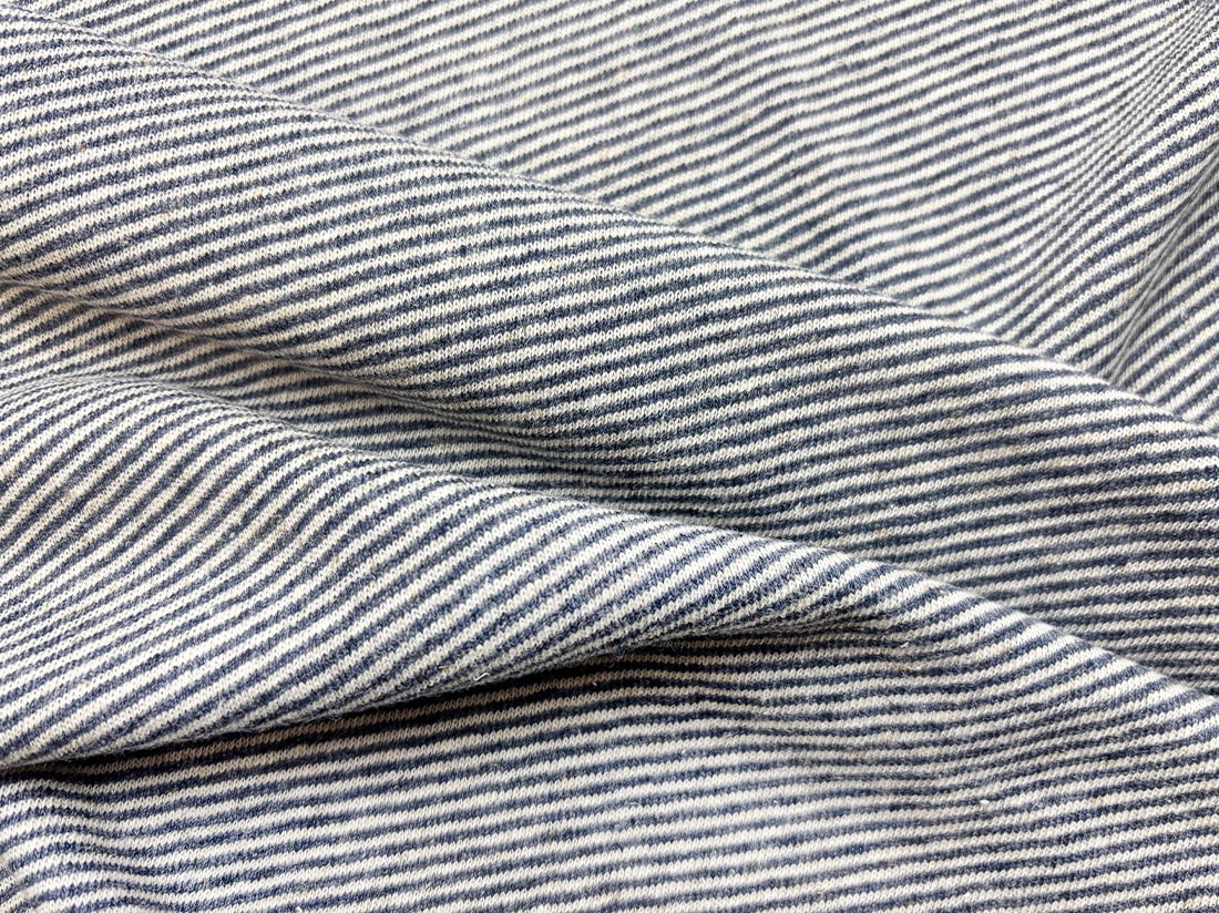 リネンコットンサニーズミジンボーダー天竺 ブルー杢
