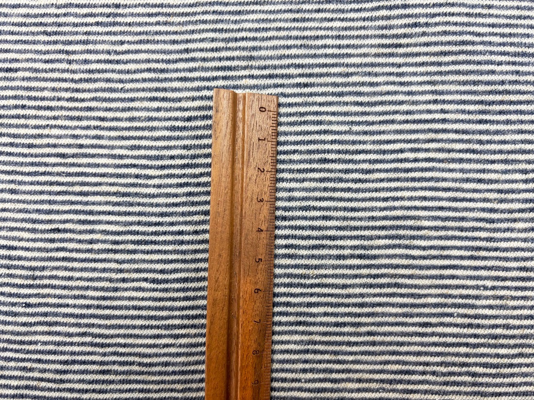 リネンとコットン、それぞれの良さを活かして仕上げた細かなミジンボーダーの天竺ニットです。