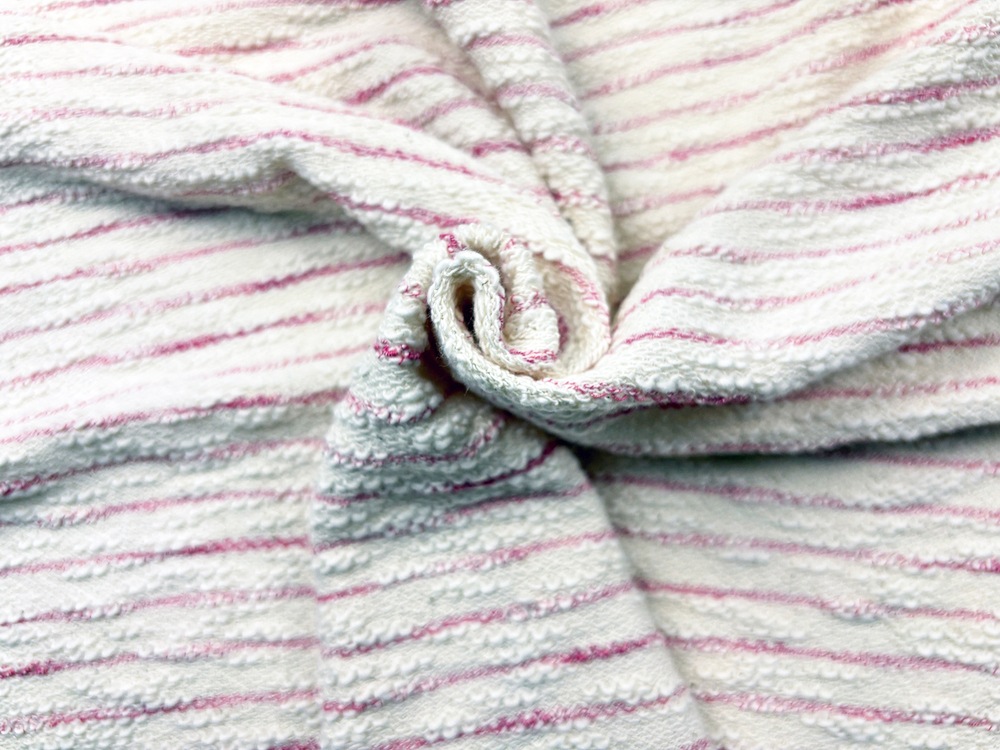 スラブ糸特有の太さの緩急が生む凹凸は、