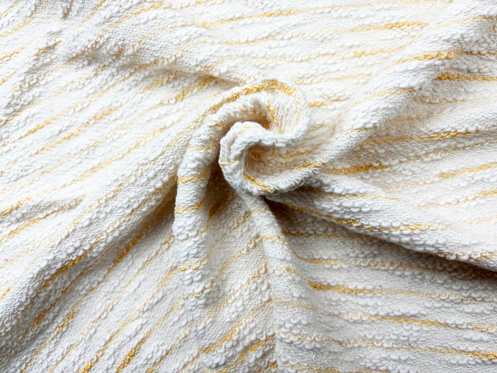 スラブ糸特有の太さの緩急が生む凹凸は、