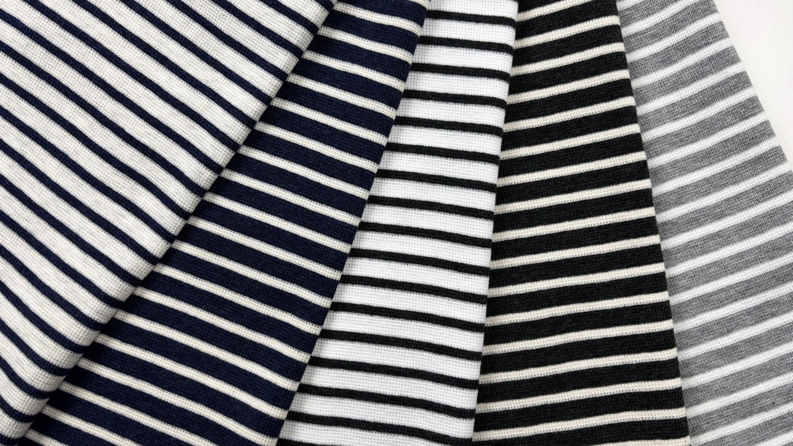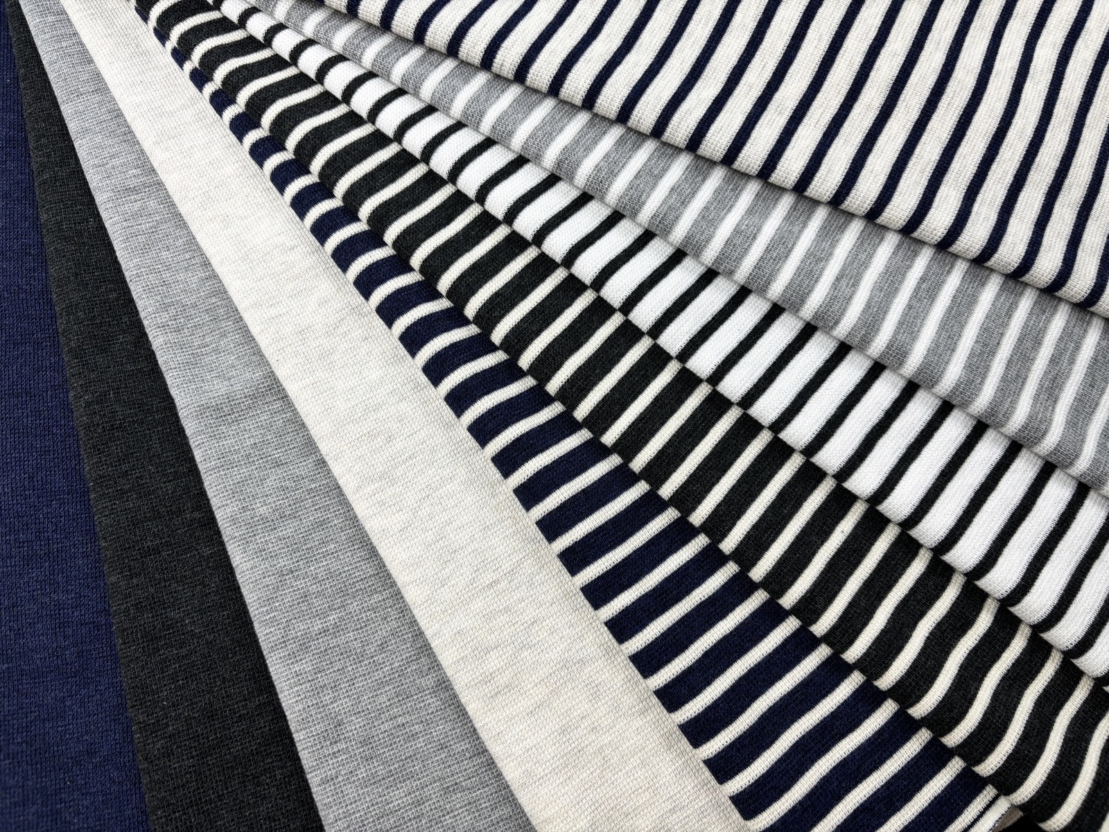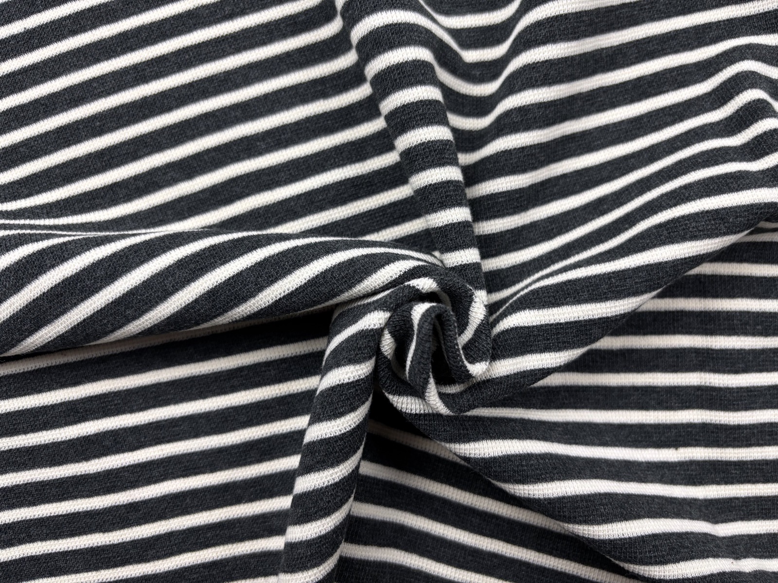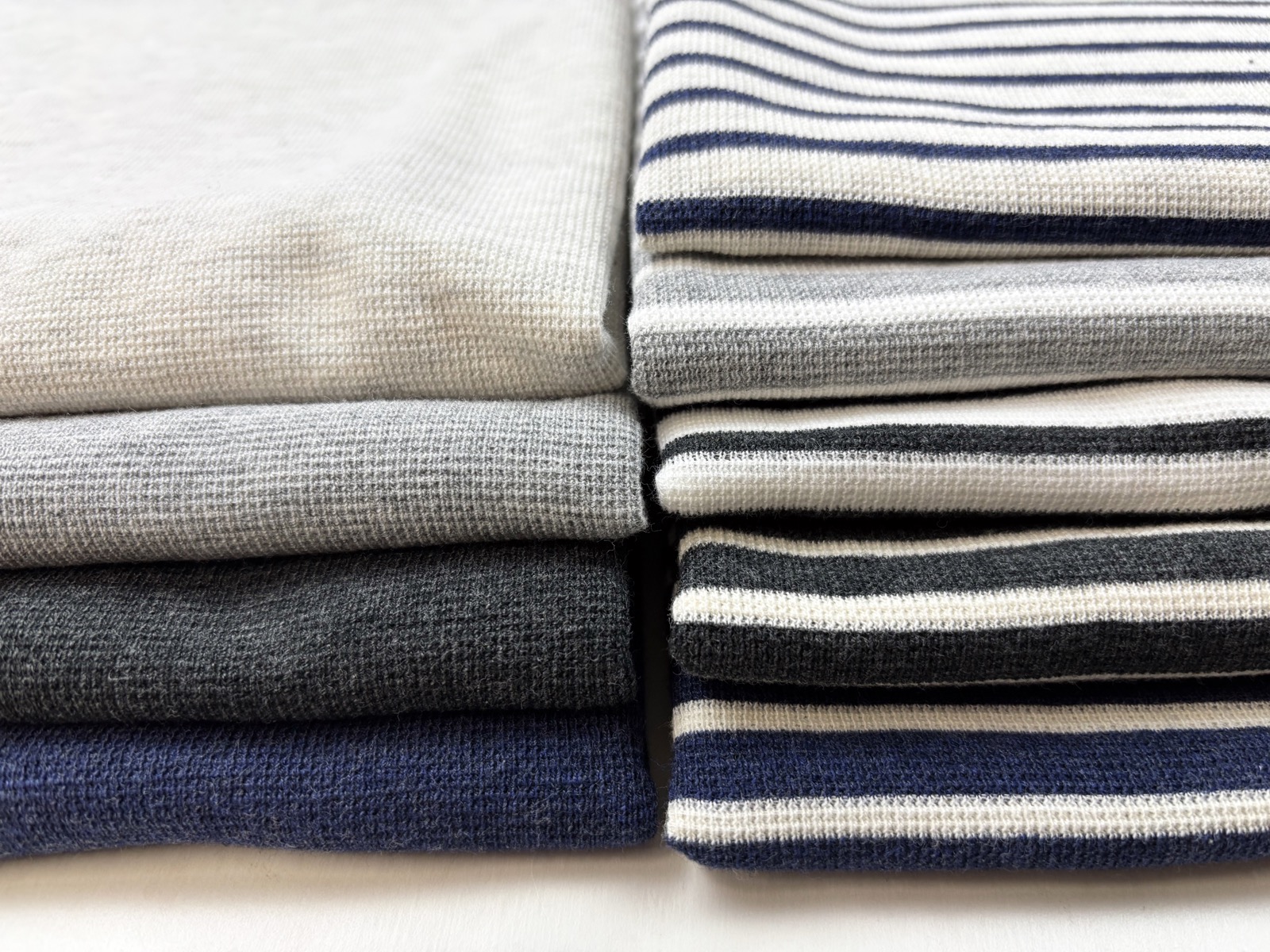 杢糸の豊かな表情を活かした、ミニワッフル編みのボーダーニット生地です。