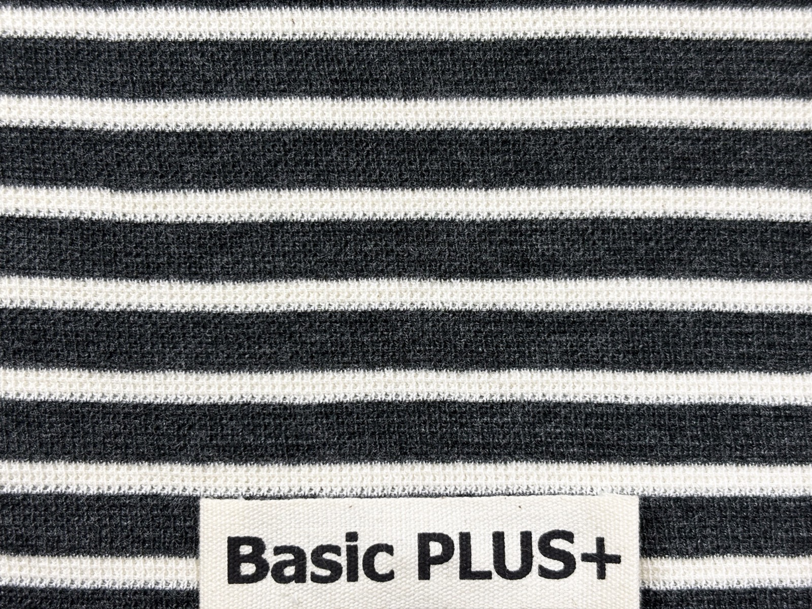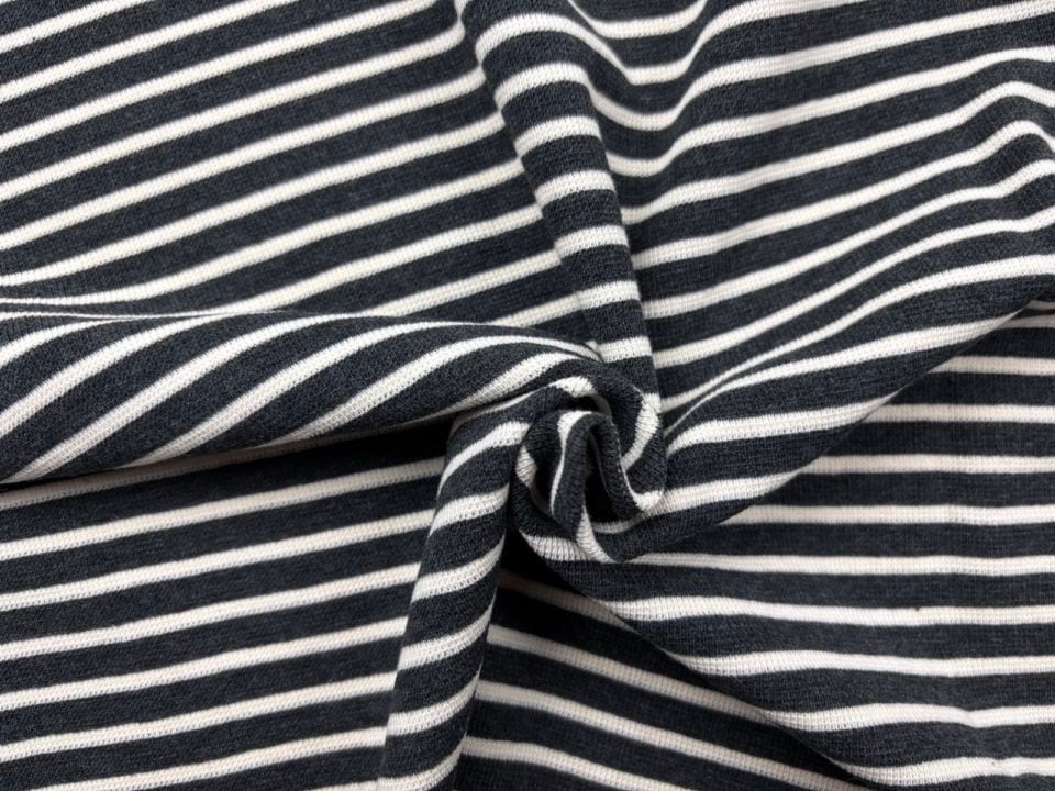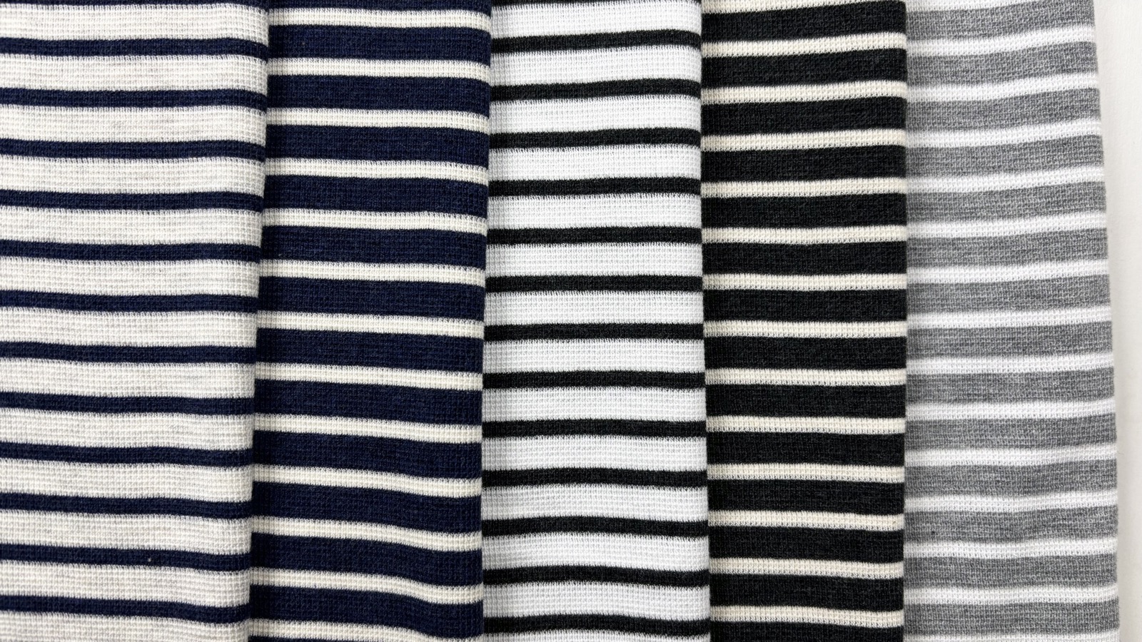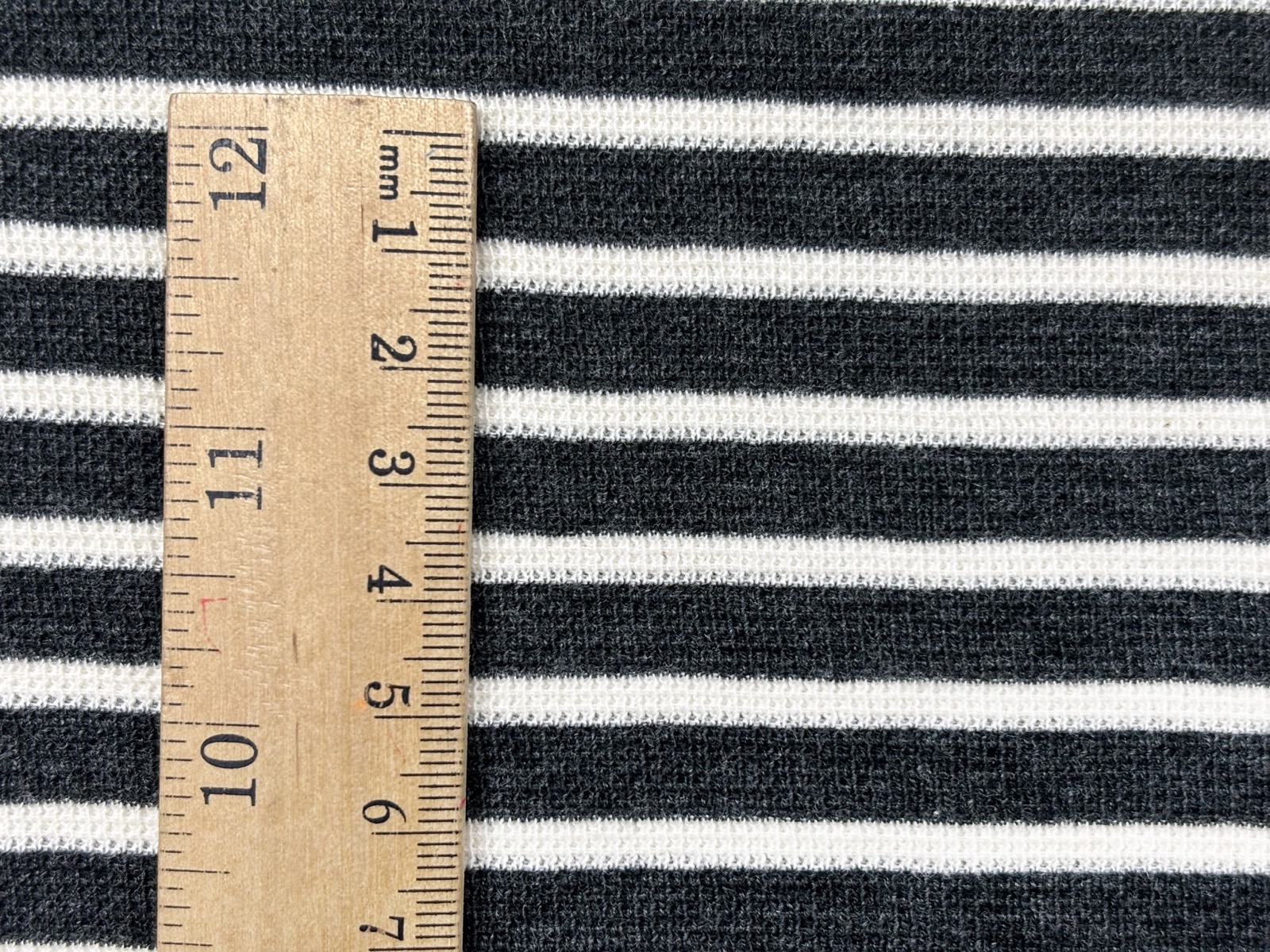 杢糸の豊かな表情を活かした、ミニワッフル編みのボーダーニット生地です。